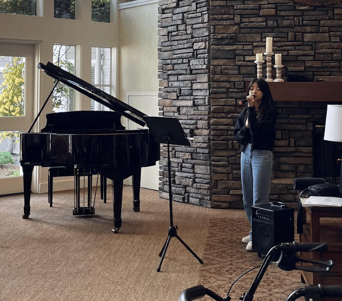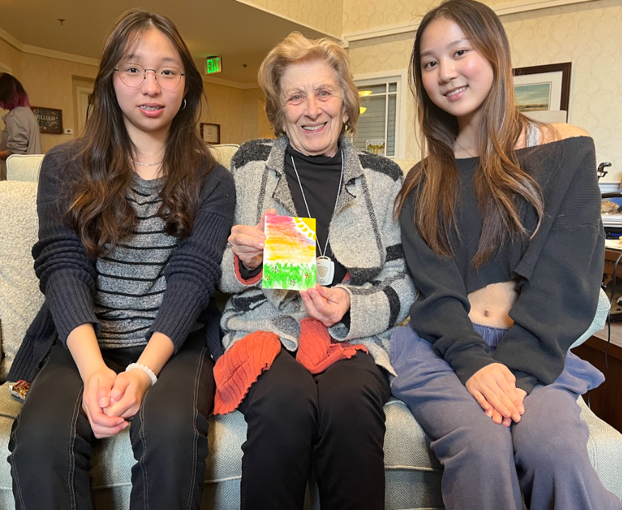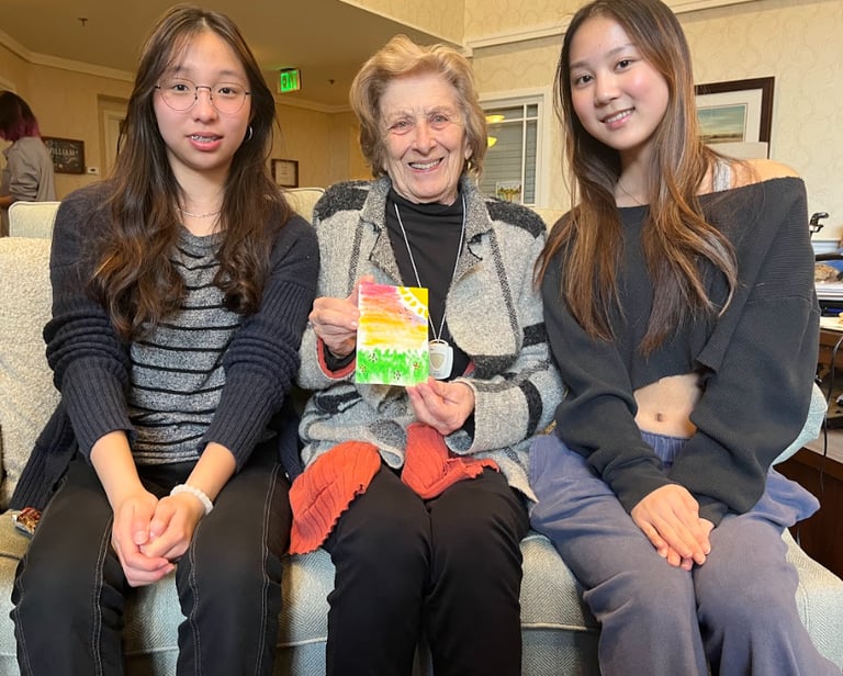 Xylia Zhu and Angela Lin creating art and memories with seniors.