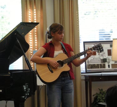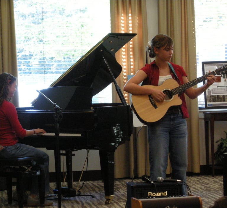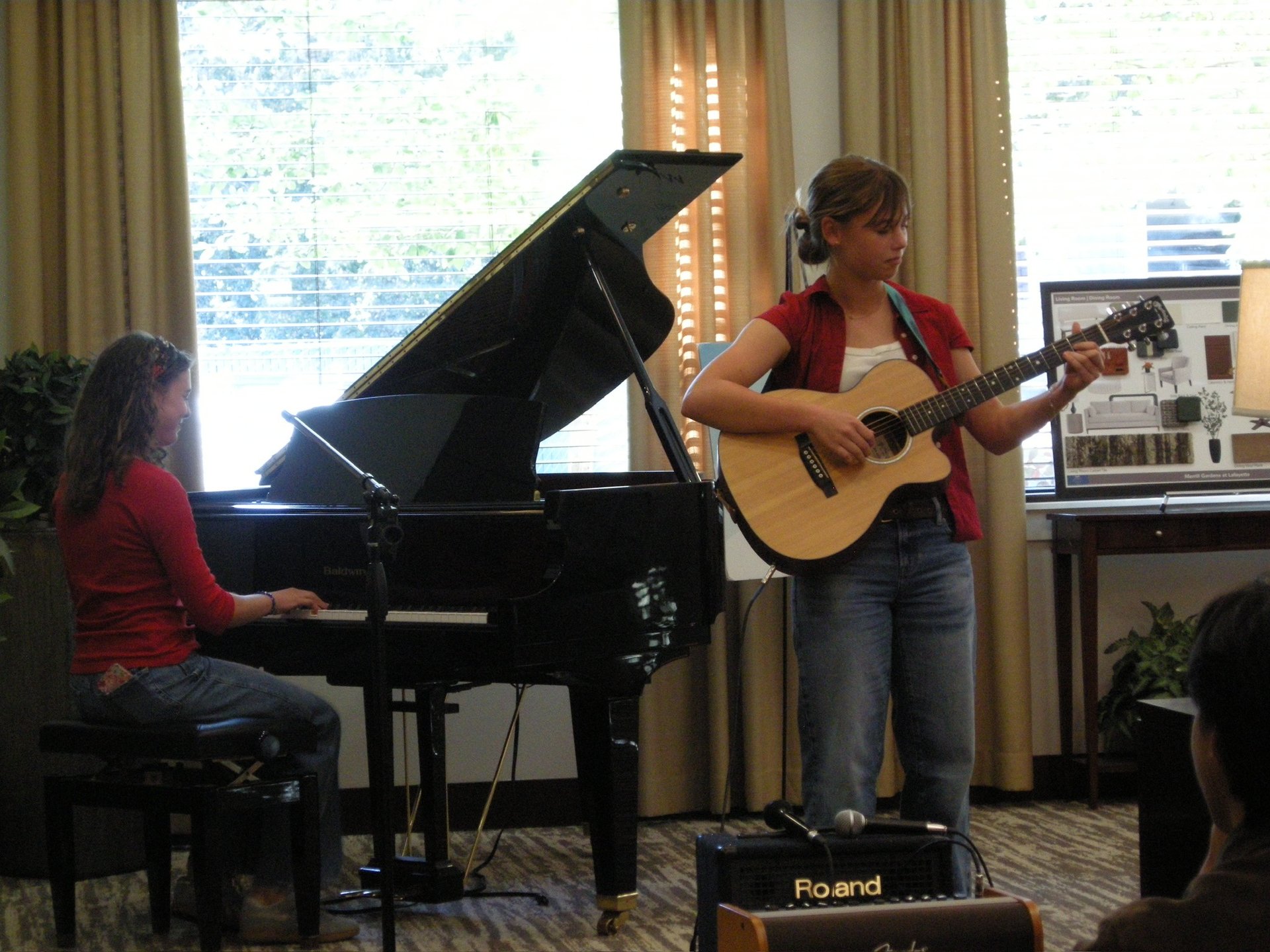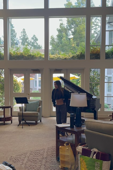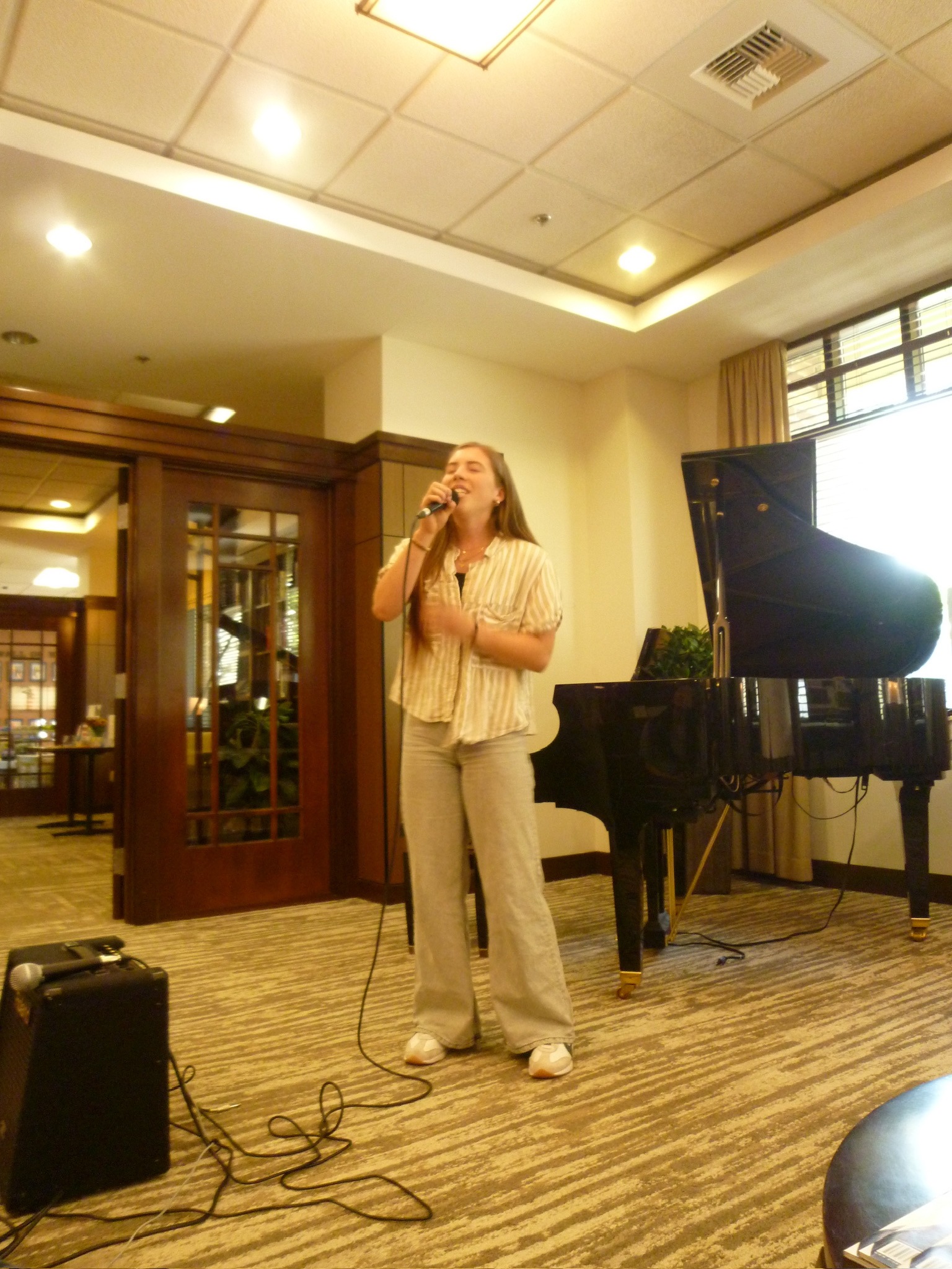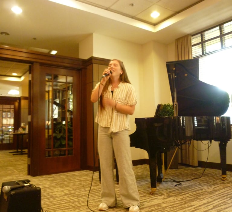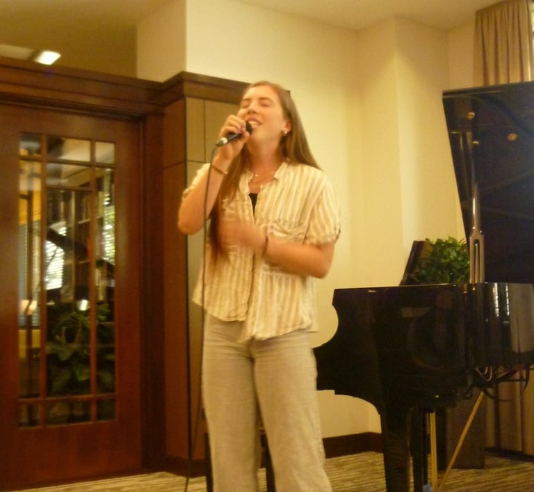 Marlo Ines singing and playing the piano.