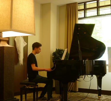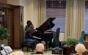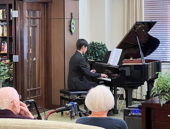 Hoyin Xiao performing a classical piece on the piano.